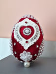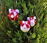 Weihnachtskugel aus rotem und weißem Samt mit Schl