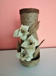Jutevase mit Liliendekor Wohndekor Tischdekor Hand