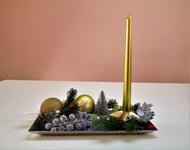 Weihnachtsgesteck mit goldene Kerze Wohndekor Tisc